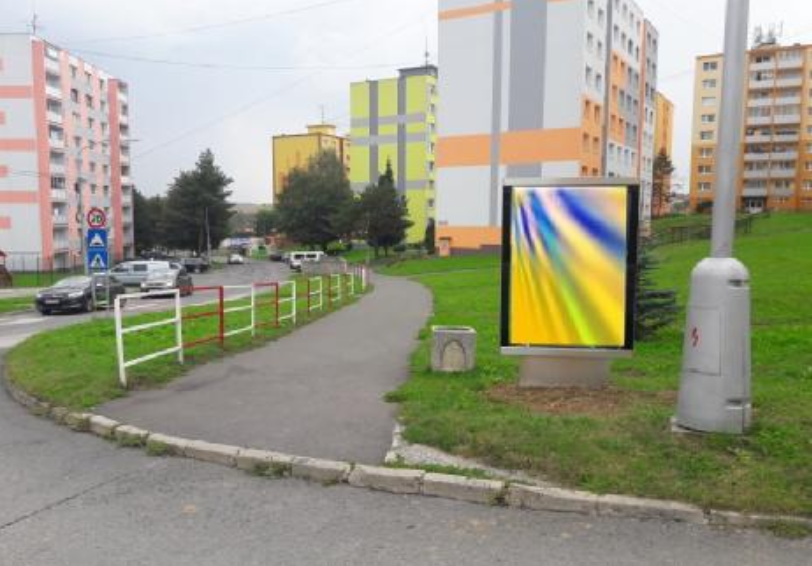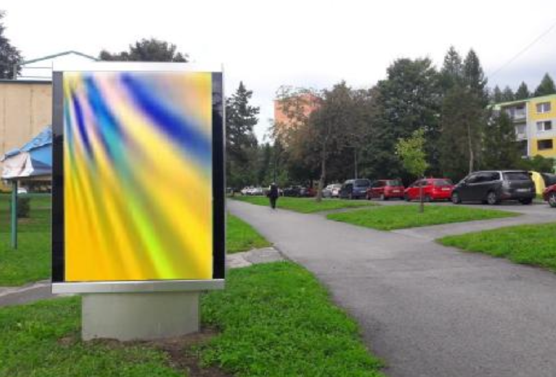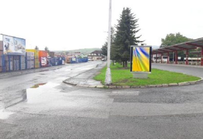 Na oplotení areálu STK, pred reštauráciou HOT POT a benzínovou pumpou Shell.